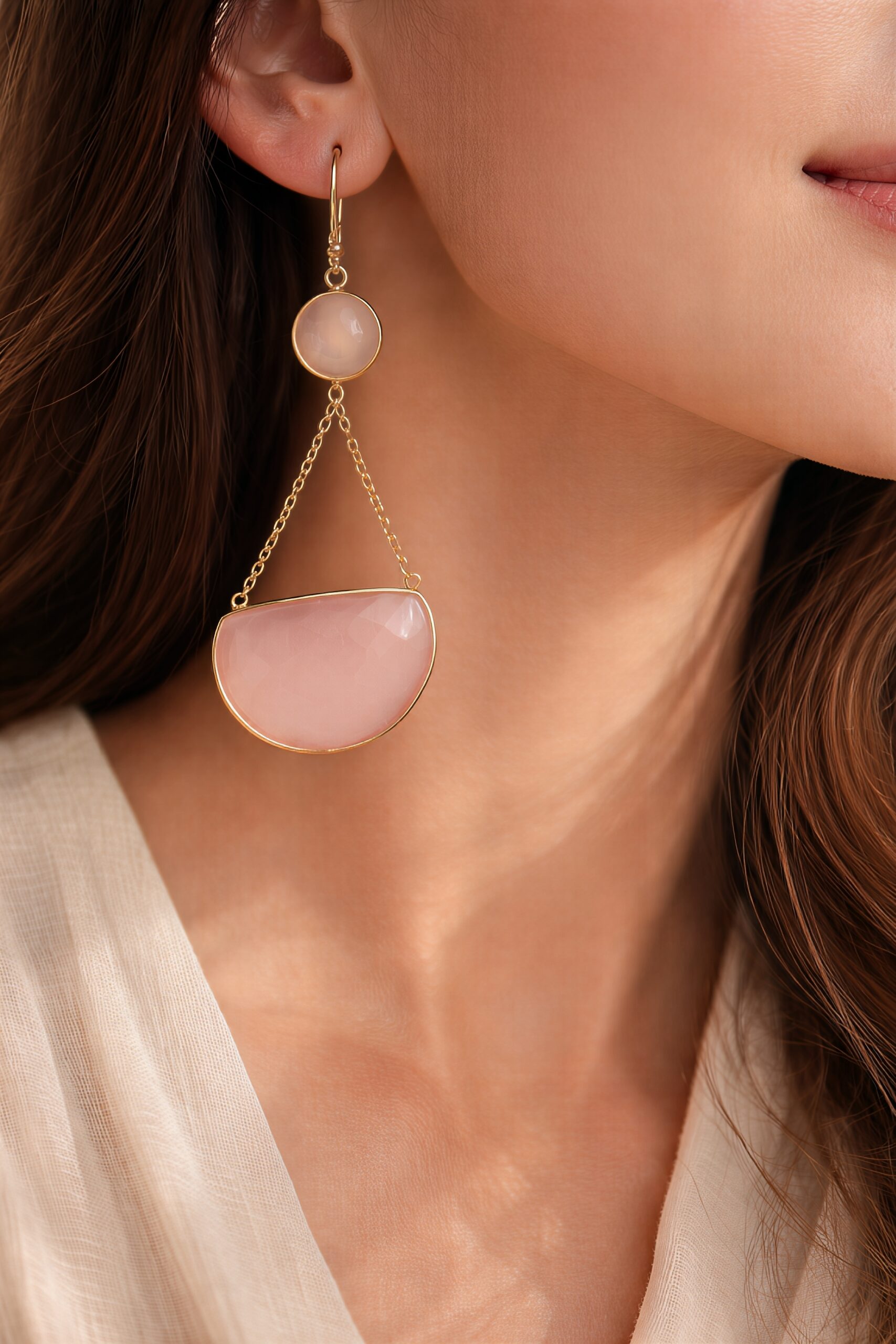 Lightweight long earrings featuring opal and carnelian stones, designed for graceful everyday elegance.